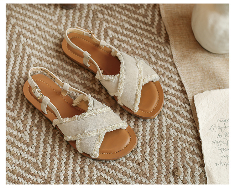 Flat Shoes Leather Cross Simple Ladies Roman Sandals Beach Casual Women’s Shoes