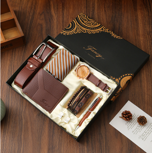 Watch+leather bag+belt+key ring+signature pen+perfume+gift box